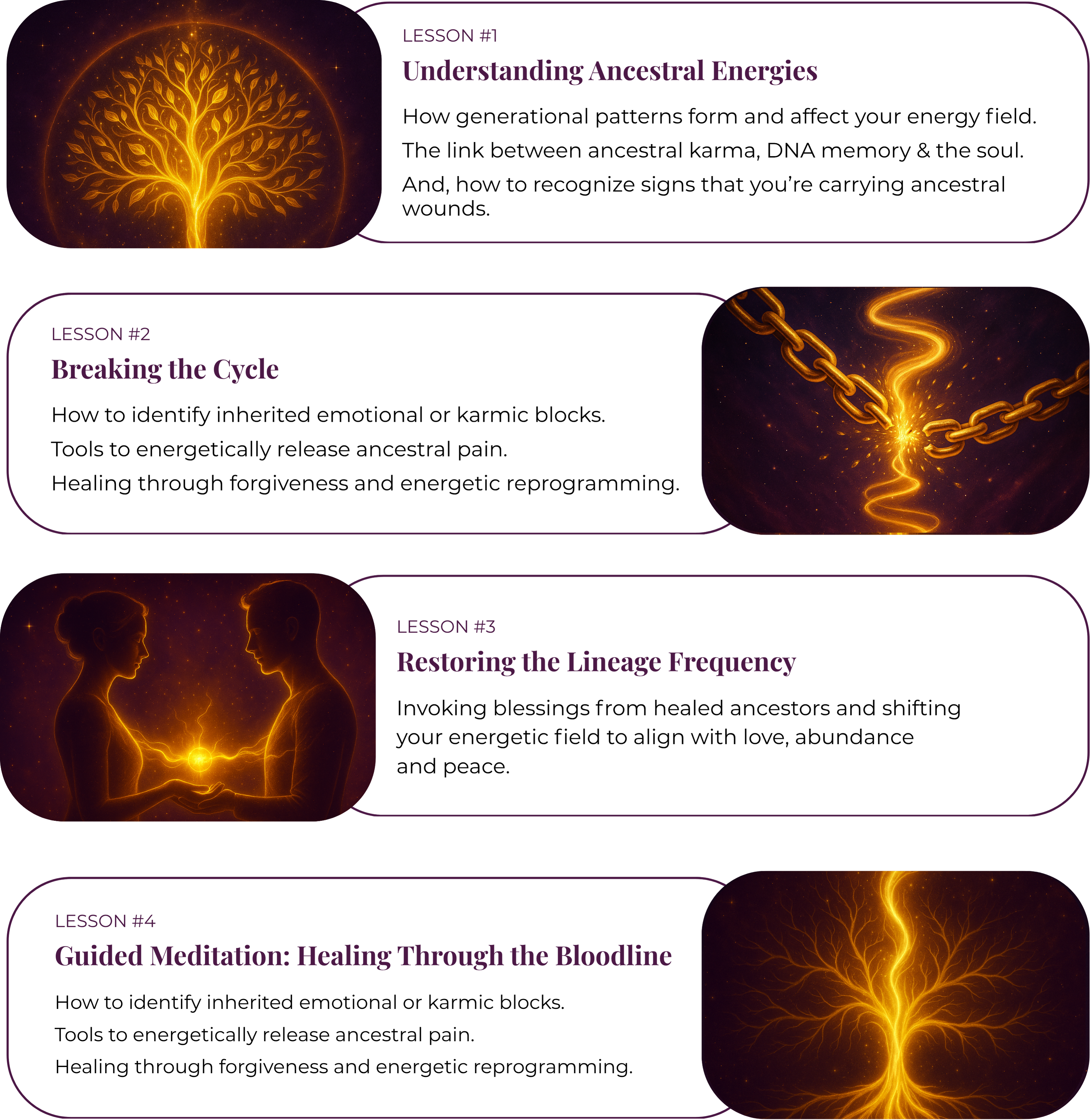 Heal the Patterns Beneath the Surface: Many of the challenges we face are reflections of unresolved ancestral patterns. By recognizing and working with these roots, true healing becomes possible at the source, not just the symptoms.